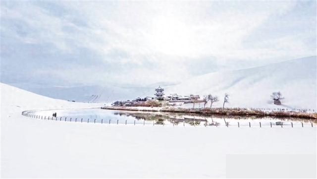 冬春季的敦煌有着别样的好意思景,初雪后的莫高窟显得尊容沉静,当朝晨的那一缕阳光映照在九层楼时,散放出“万丈金光”,令东说念主头昏脑闷。大雪仿佛为鸣沙山盖上一层白茸茸的毯子,展暴露更好意思更纯的宁静气质。漫天白雪阴事了漫漫黄沙,行走在演义念间,咯吱咯吱的声息连续于耳。