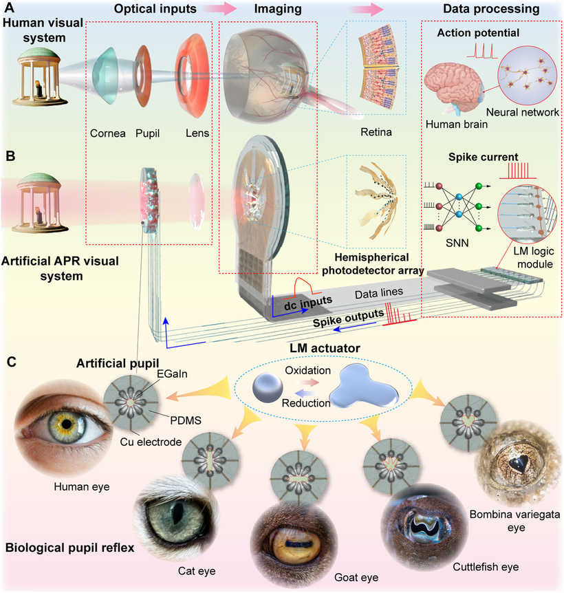 据外媒报谈,收成于一款仿生眼的研发,机器东谈主视觉有望很快取得进步,这种仿生眼梗概左证后光变化自动诊治瞳孔大小。在发表于期刊《Science Robotics》的一项酌量中,酌量东谈主员详备先容了他们何如创造出这种仿生视觉系统,该系统不仅师法了东谈主眼的视觉神气,还能符合不同的光照条目。这项技能旨在弥合世俗录像头和生物体感知周围环境神气之间的差距。