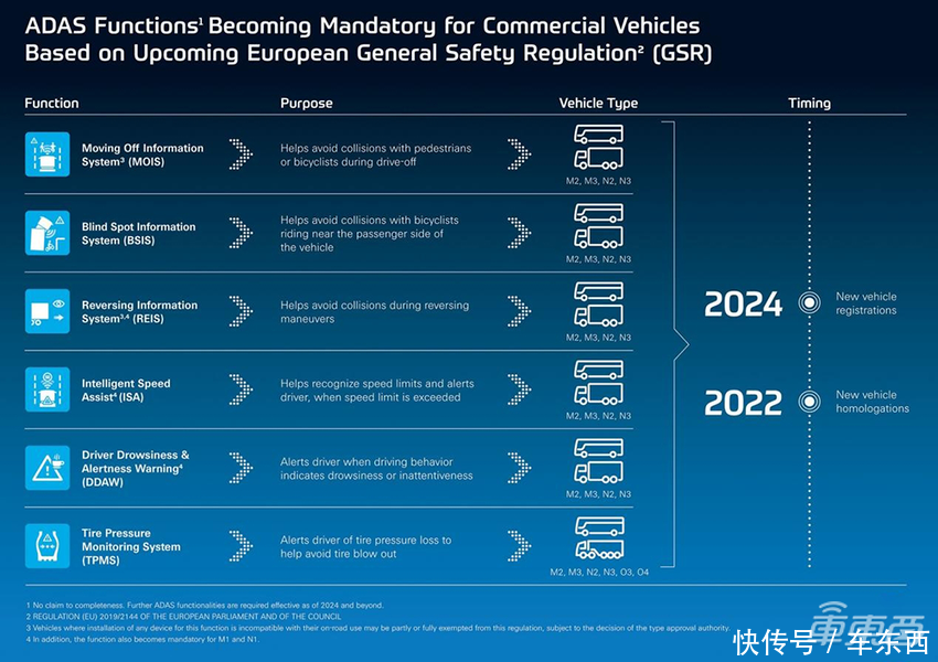 欧盟于2019年公布的通用安全轨则Regulation (EU) 2019/2144(简称新GSR),为欧盟乘用车和商用车设定了最低安全标准,该轨则在2024年7月7日起适用于总共新上牌注册车辆。