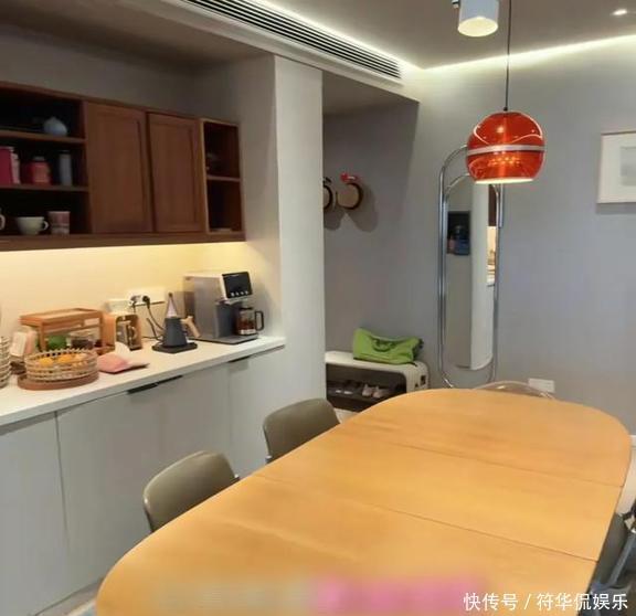 餐厅面积也曲直常宽阔,实木橱柜和大理石操作台与餐桌颜色显得井水不犯河水,张芳还在餐厅里装修了一座水吧,看的出来,张芳鸳侣也曲直常懂得享受生计的东谈主。
