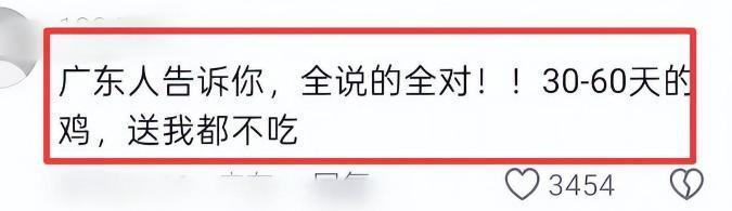 是以全进华质疑评委所说的“口感嫩”的鸡,应该是那种一个月到两个月就上桌的鸡,接着他说了一句让东说念主不太惬意的话:“要是在广东,这种鸡,白送给我我王人不要……”