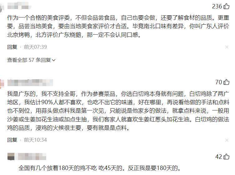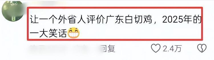 而广东网友更是激昂,认为广东白切鸡在他们那边很有巨擘,不可被“不够嫩”这么的大意评价而轻茂或误会。