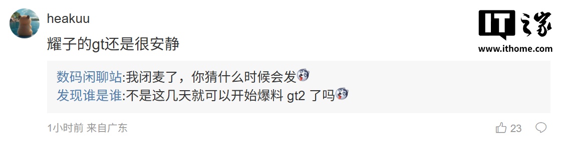 后续灵验户在指摘区暗意:“耀子的 gt 还是很欢快”,博主回报说念:“我闭麦了,你猜什么时辰会发 [二哈]”;另别称用户则盘问说念:“文中所说的中端机啥时辰发布呢 [狗头斜眼]”,博主则回报说念:“这一堆全家桶揣摸都是春节前吧,三证王人全了”。