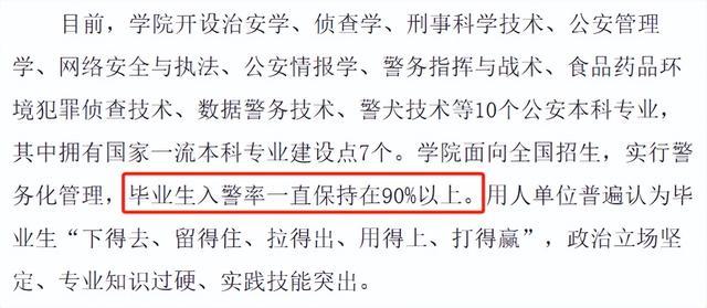 学校官方明确默示,毕业生入警率一直保捏在90%以上!亦然妥妥的“包分拨”。